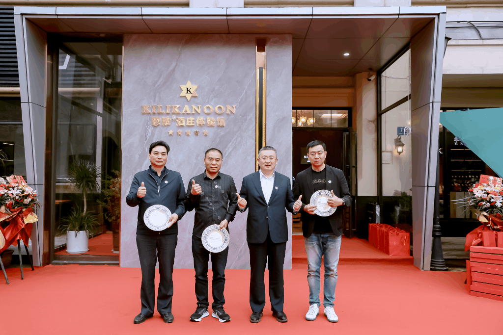 张裕股份总经理孙健先生、歌浓酒庄总经理崔维斯·富勒先生为上海平一酒业董事长陆勤奎先生颁发院长聘书