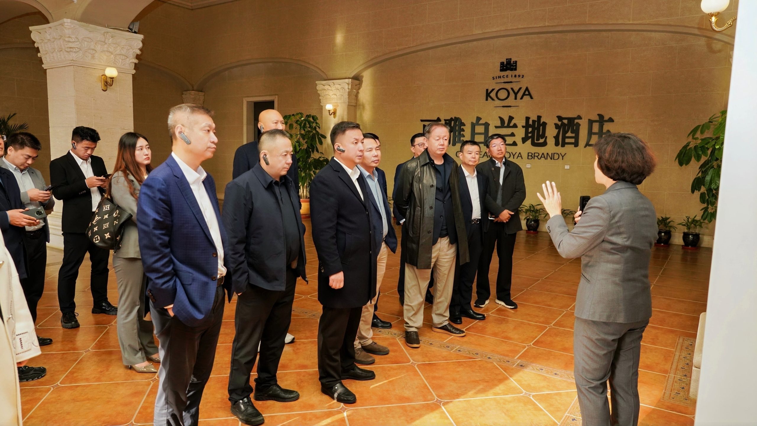 张裕股份副总经理、白兰地销售事业部总经理姜华在现场向代表团介绍可雅酒庄及张裕白兰地情况。