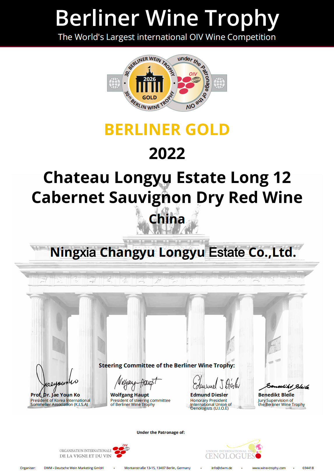 长歌葡萄酒斩获柏林葡萄酒大赛“大金奖”。